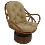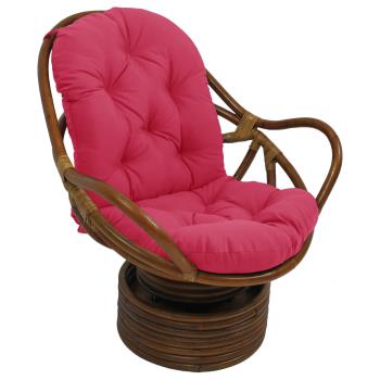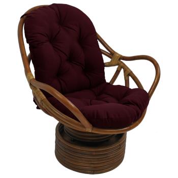 This is a Rattan Swivel Rocker Chair. It is constructed of a walnut finished rattan, and includes comfy 6" polyester filled solid colored outdoor fabric cushion. Assembly instructions are in the pictures below. It's tufted to keep the layers from shifting. it is the thickest and nicest cushion we have ever seen, and it's made in America.
