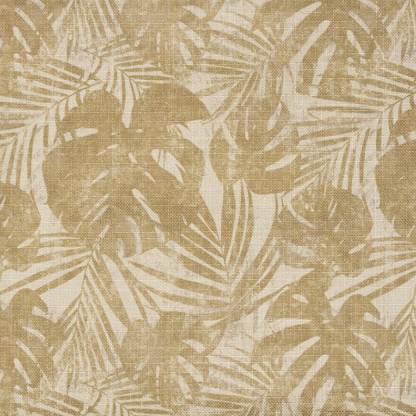 It's palm branches and large philodendron leaves in shades of olive, with a beige background is sure to please the natives.