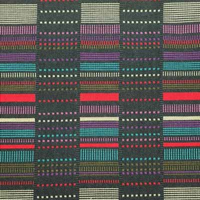 Talisman Ebony is a beautiful, rich, woven fabric made with stripes and lines in shades of Blues, Red, Black, Tan and browns.